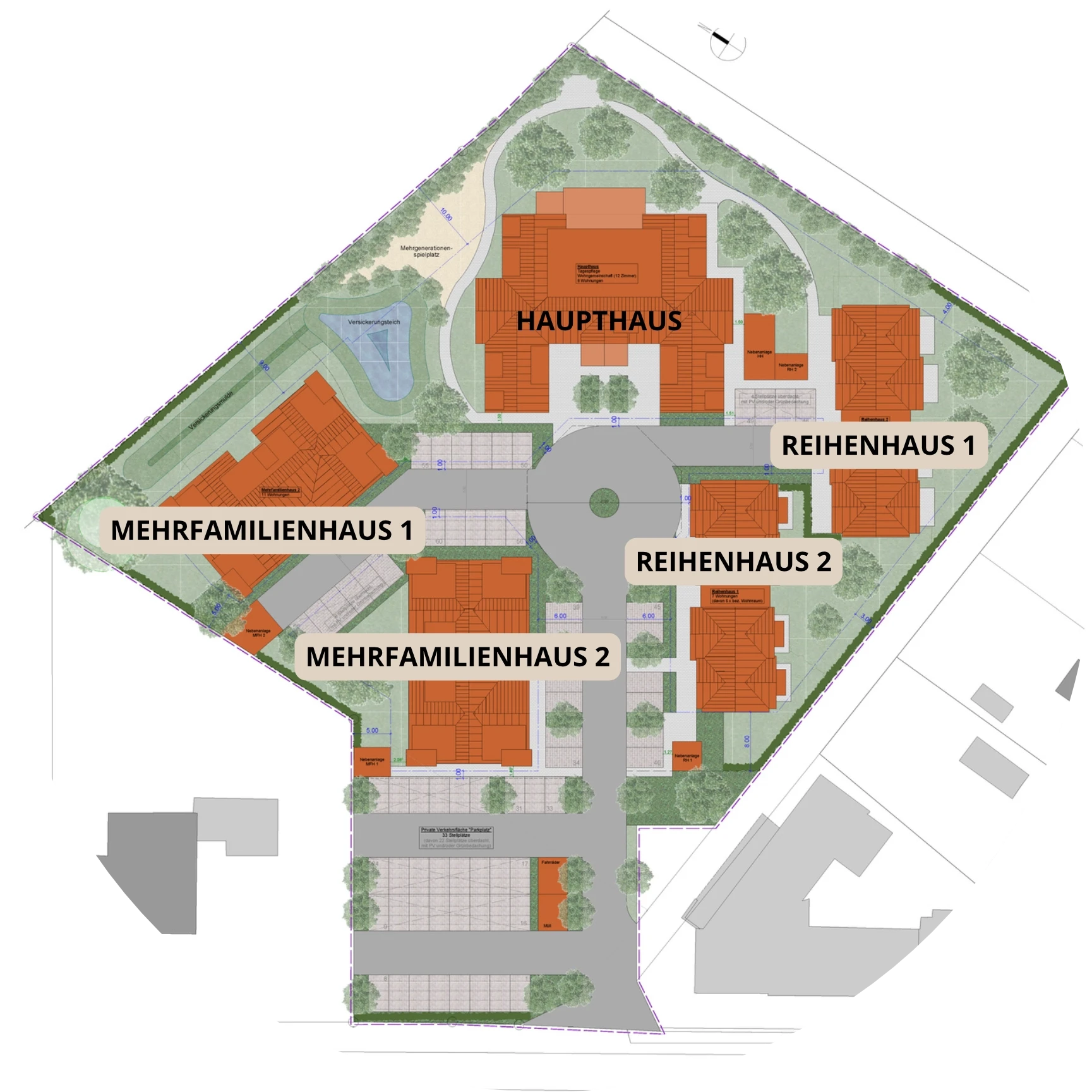 • jeweils mit einer kleinen Terrasse und kleinem Garten